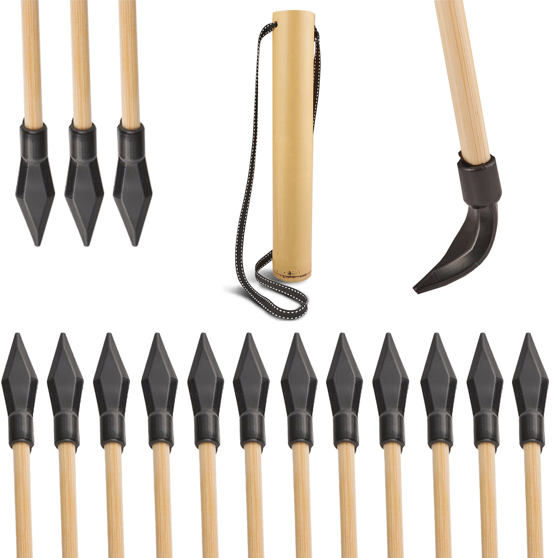 - Beliebte Gummispitzen-Pfeile - Jeder Bambuspfeil ist mit einer Gummispitze versehen. Diese Gummispitzen haben keine scharfen Kanten, sind aber dennoch spitz genug, um in einem Strohballen zu landen.