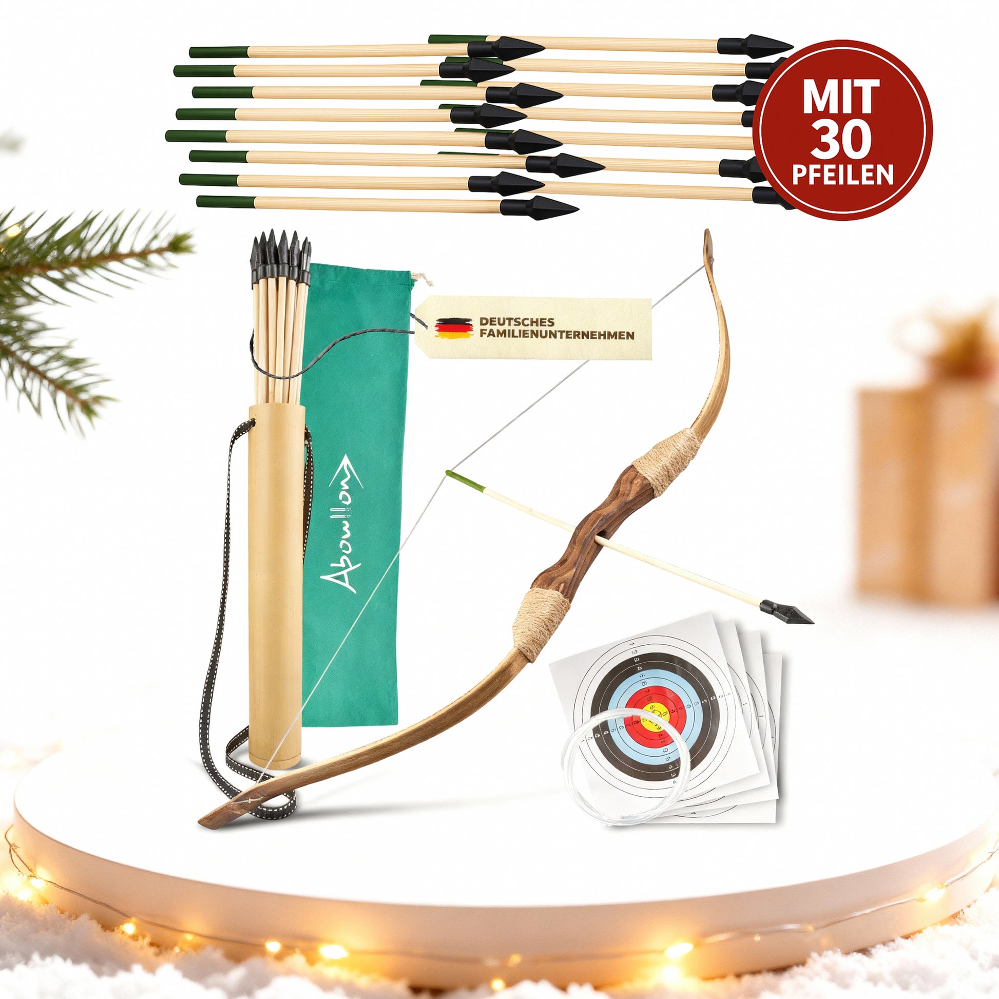 Pfeil und Bogen Kinder Sportgerät Holz Set mit 30 Pfeilen & ZIelscheiben